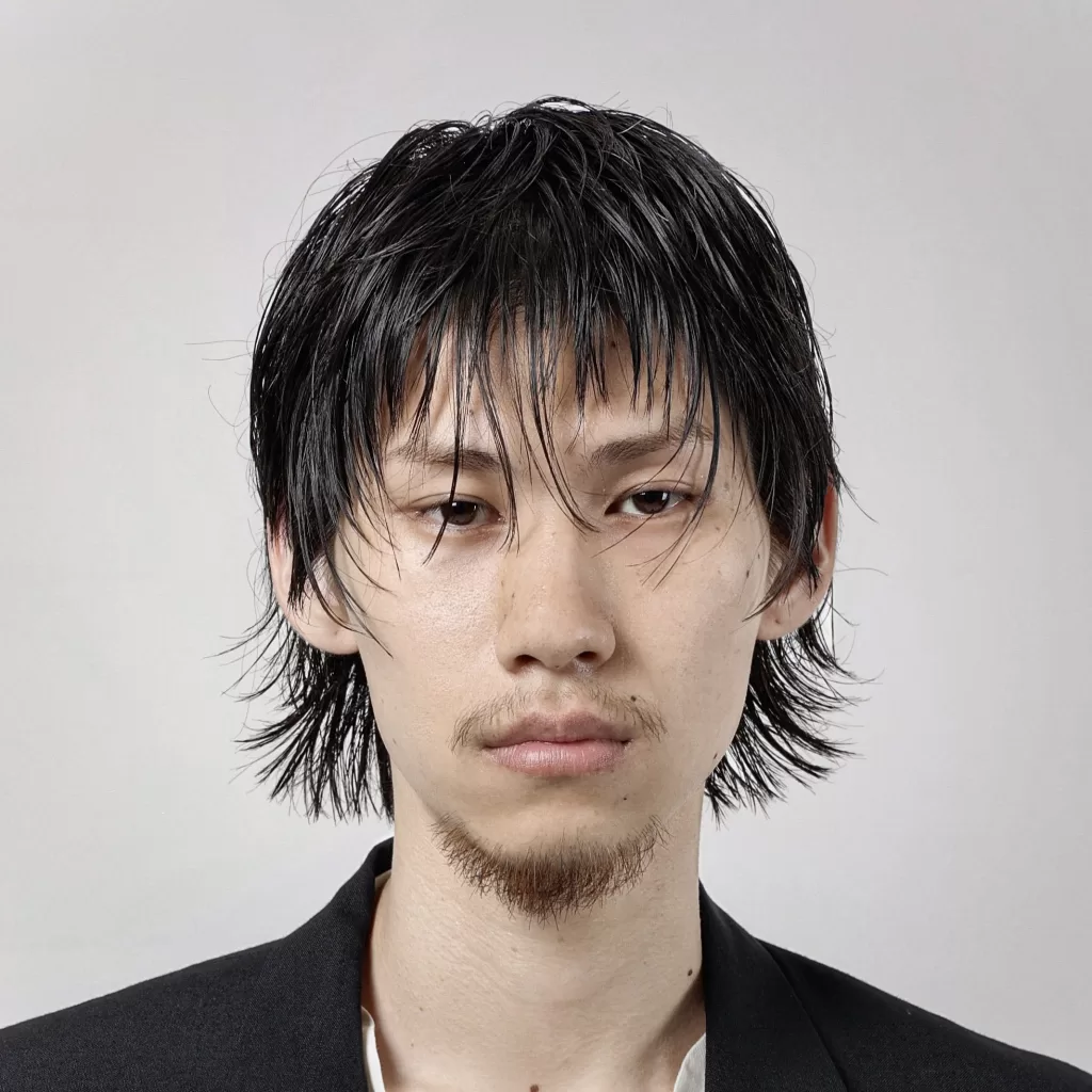 ( 鈴木 仁 )長短さを大胆につけてザクザクと切り込んだハサミの質感と、ラフに見えて計算された髭のデザインが絶妙にマッチし、平成カルチャーを思わせる「いなたなさのあるカッコよさ」が漂っています。顔周りへ落ちる繊細な毛先の処理、あえて残した襟足のバランスには、現代的でオルタナティブな視点がしっかりと感じられました。懐かしさと新しさの両方を共存させた、時代を横断するような魅力を持つデザインだと思います。